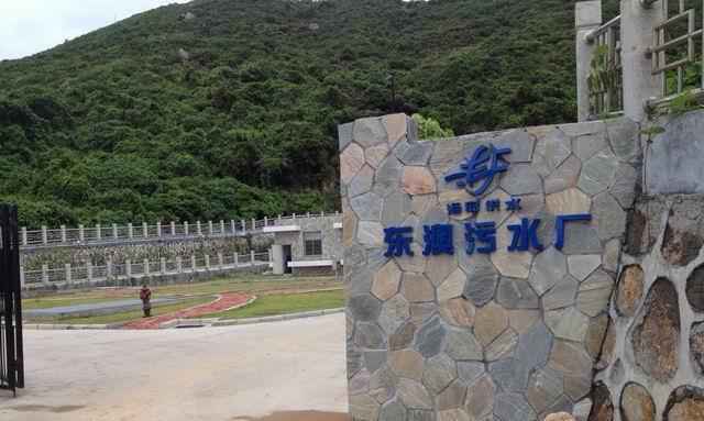 东澳污水厂位于大小竹湾,2015年12月完成环保验收,并投产。主要收集处理东澳岛南沙湾片区的居民和酒店的生活污水。设计总规模1000立方米/日,一期处理规模为500立方米/日二期规模为500立方米/日,占地约2500。处理工艺为生物接触氧化工艺,为了保持美丽的海岛环境,主要构筑物格栅井、调节池、水解酸化池、接触氧化池、二沉池、消毒池、集水井、污泥池等均以地埋的形式建设。目前年日均污水处理量200立方米/日出水水质可达到国家一级A标准。