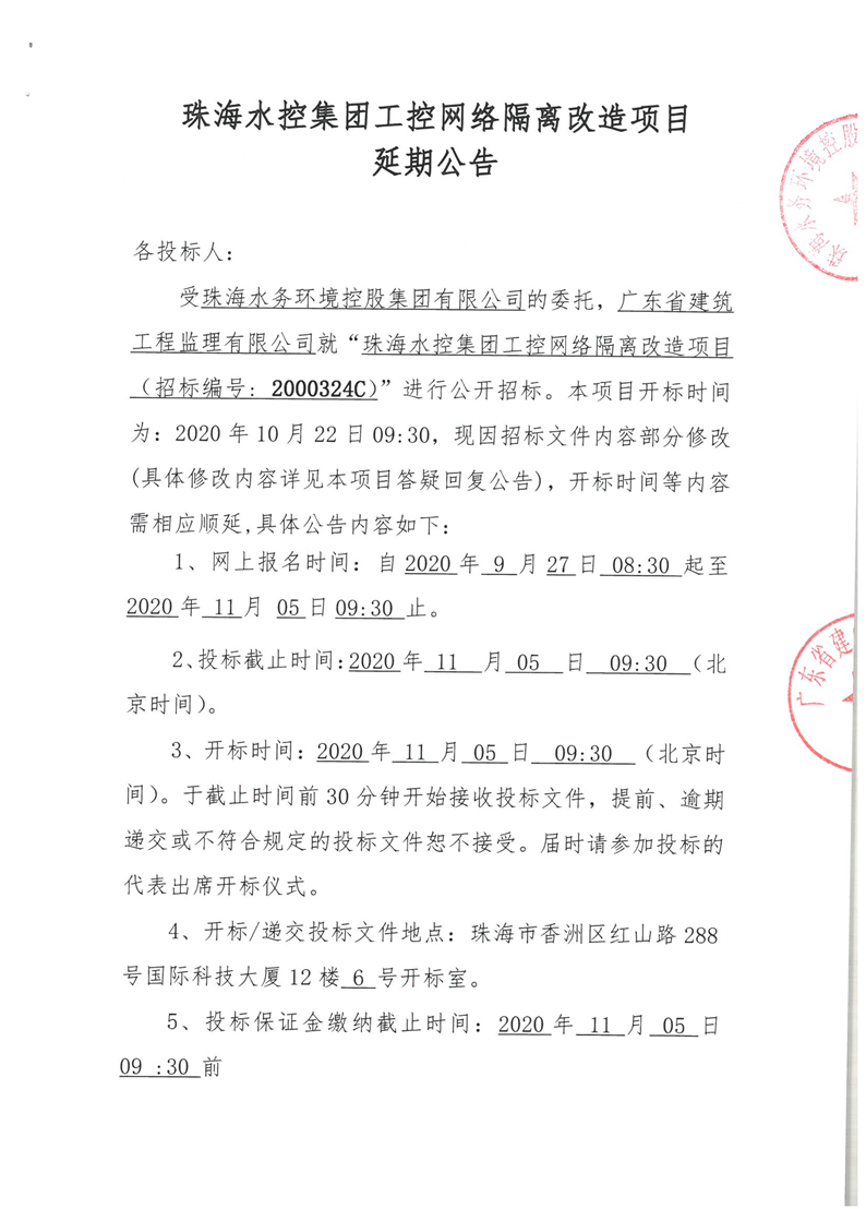 PA捕鱼工控网络隔离改造项目延期公告